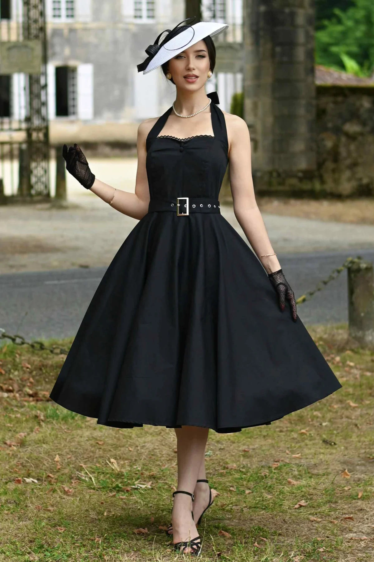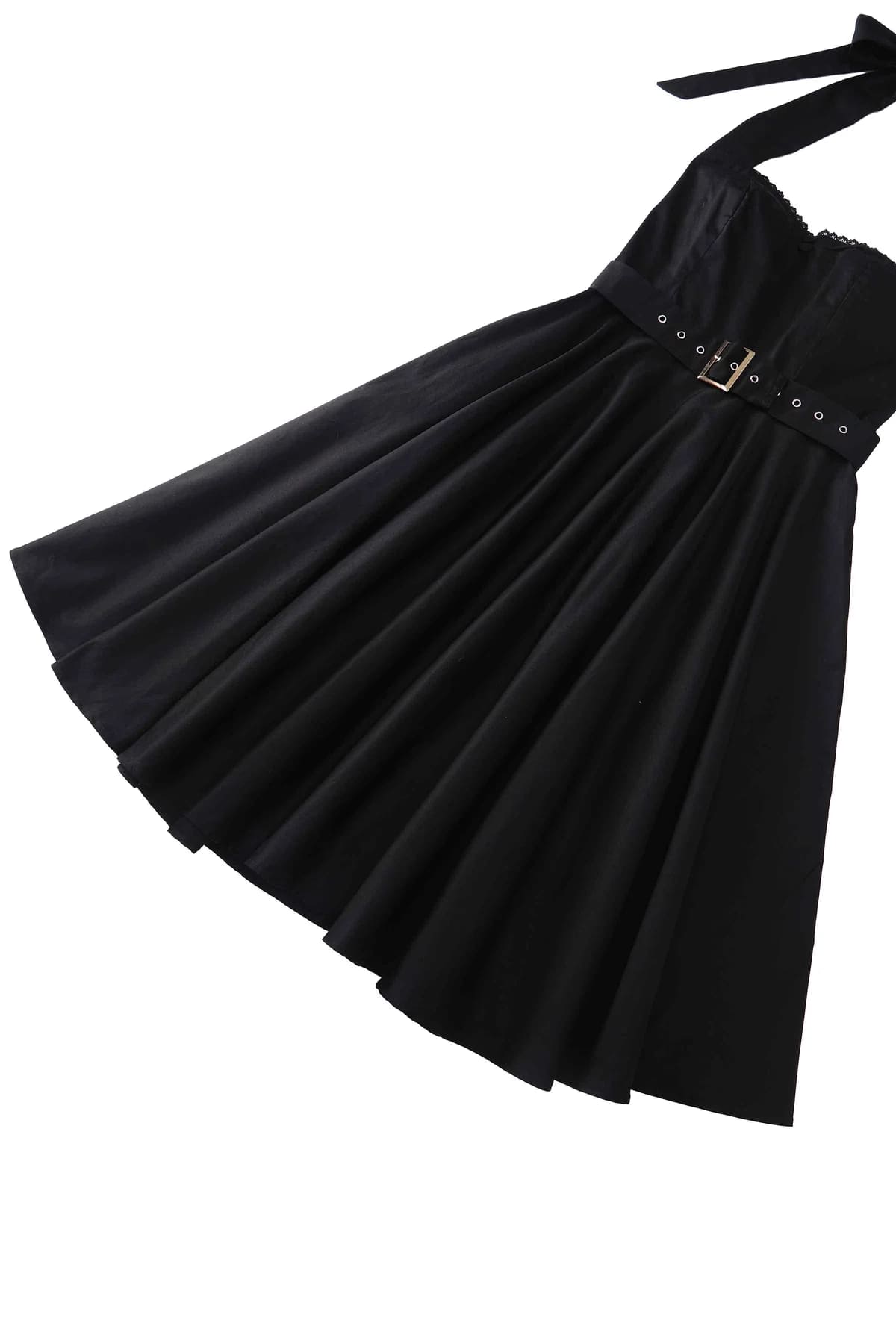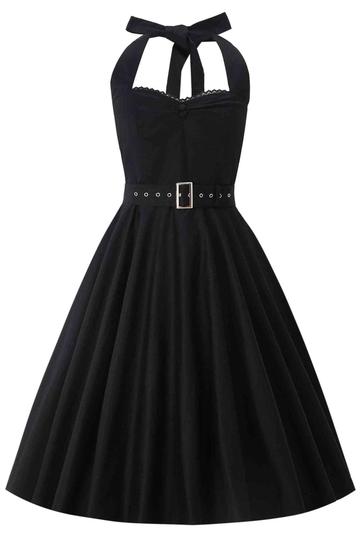 Robe pin-up à nouer autour de la nuque, classque noir uni, ceinture incluse.
