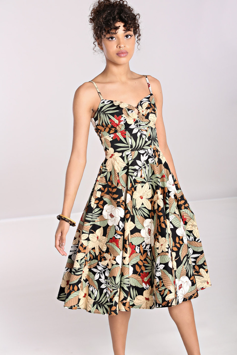 Robe mi-longue style pin-up tiki tropical