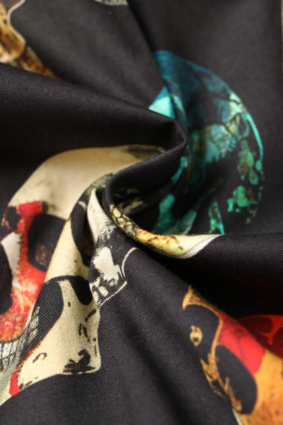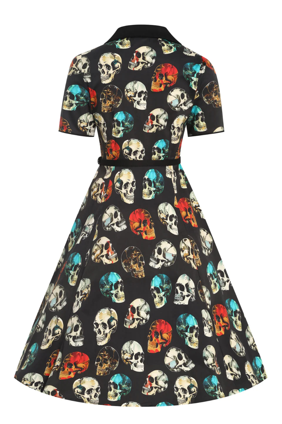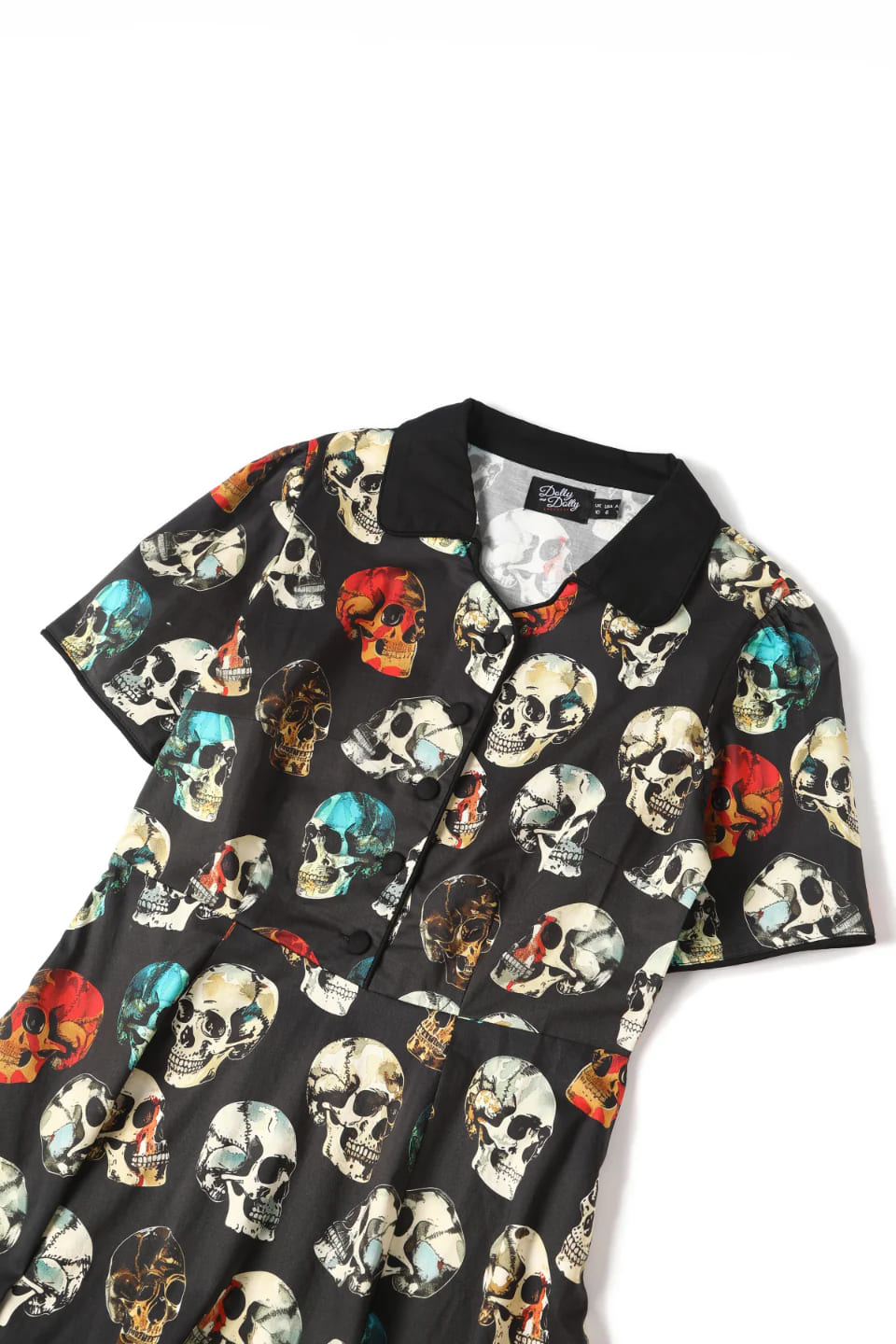 Robe style Rockabilly, forme chemisier avec imprimé têtes de mort.