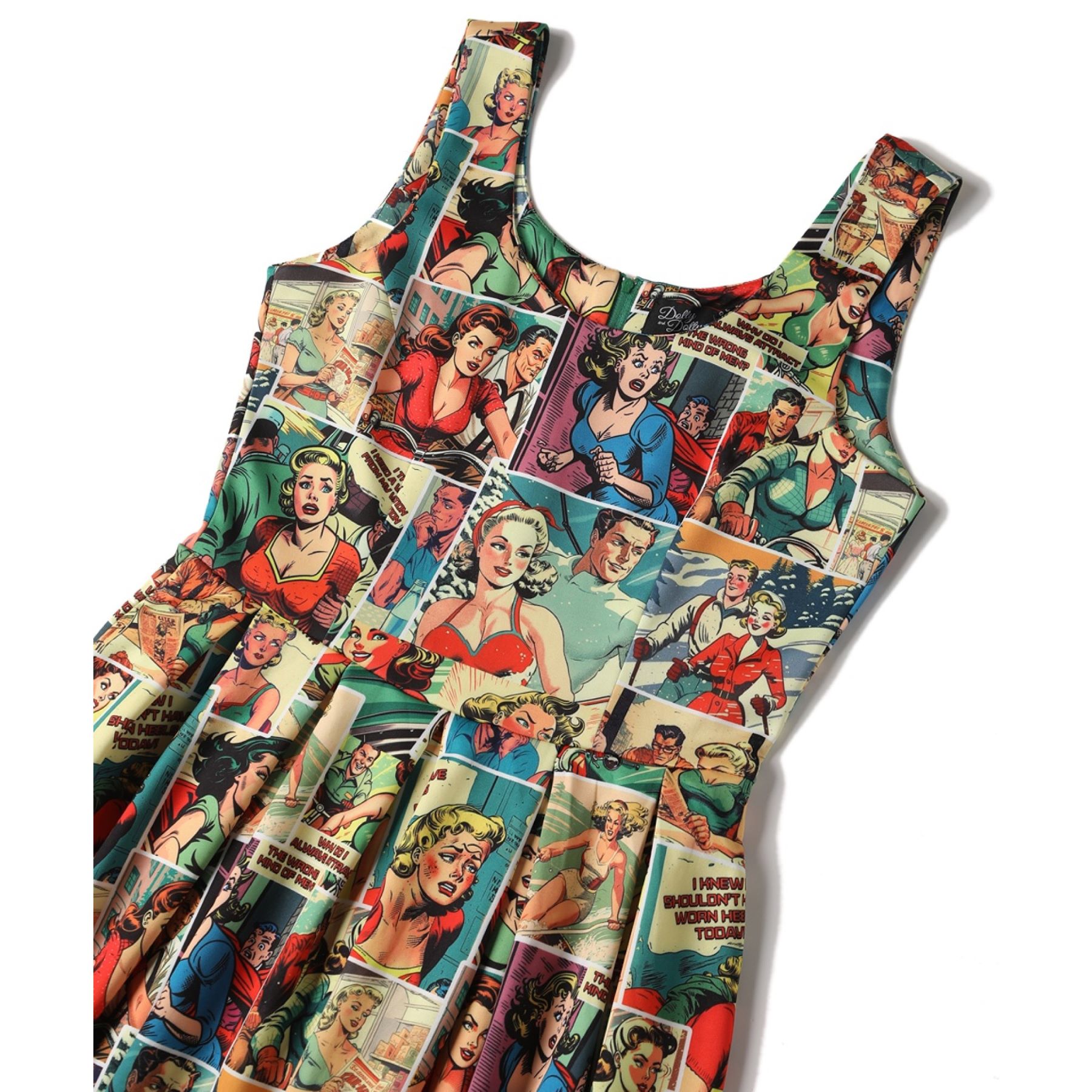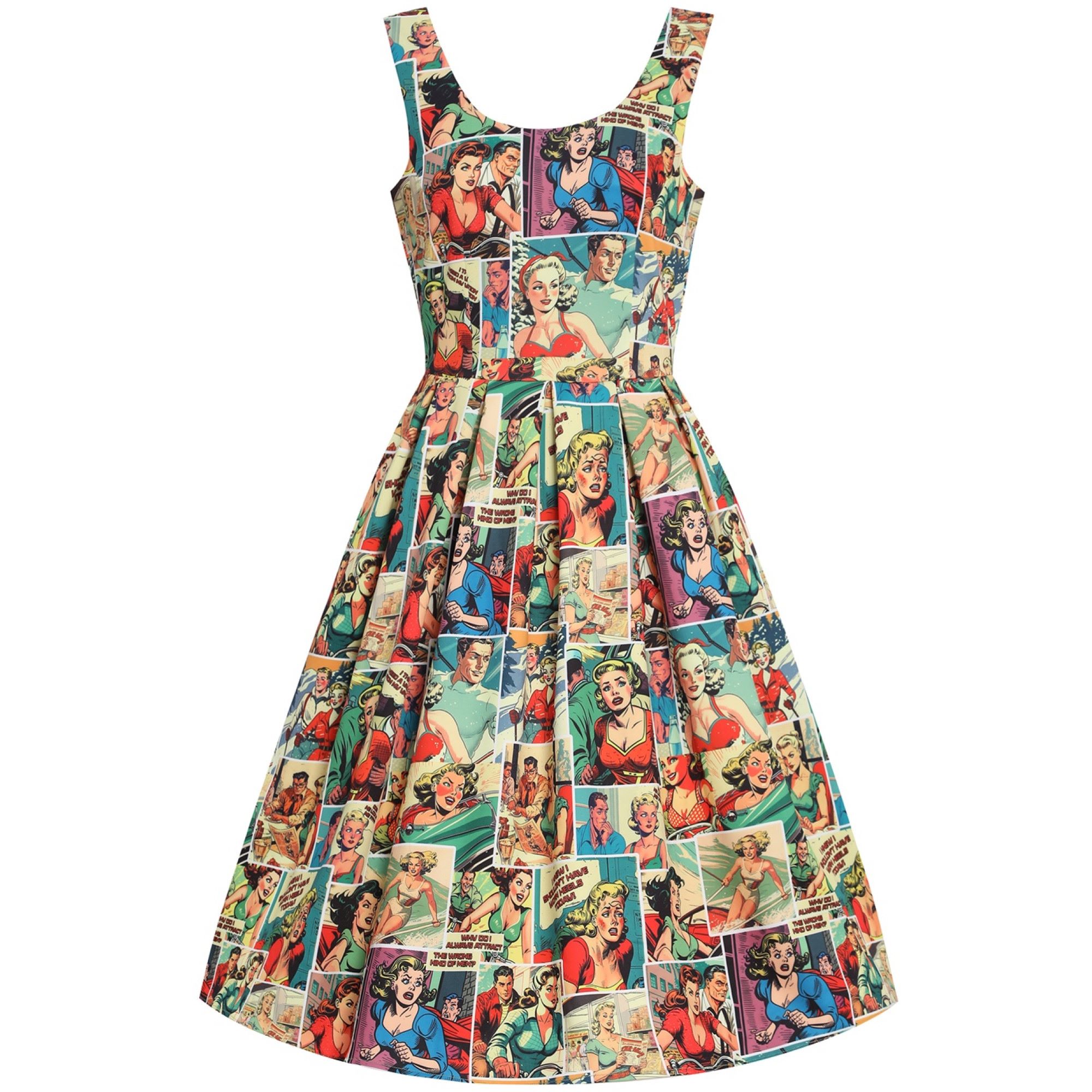 Robe swing style pin-up imprimé bande dessinée vintage