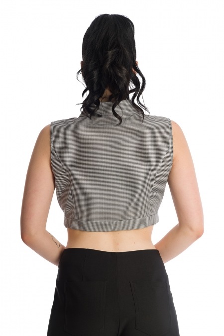 Chemisier court imprimé Vichy à noué sur le devant