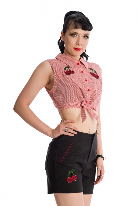 Chemisier court noué brodé de cerises Rockabilly et tissu imprimé Vichy indémodable !