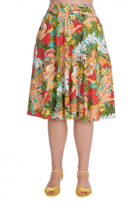 Jupe évasée style rétro 1950’s imprimée pin-up tropicale
