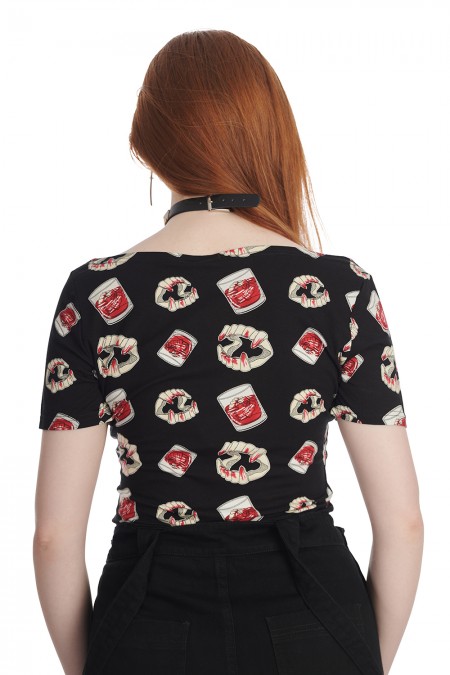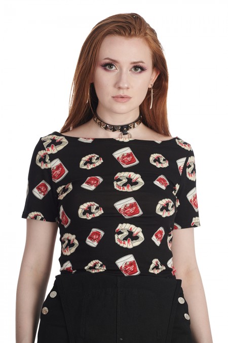 Tee-Shirt style psychobilly avec imprimé dentiers et verres sanguinolants !
