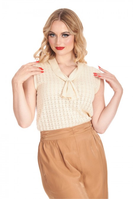 Top en maille beige, ajouré de petites ancres.